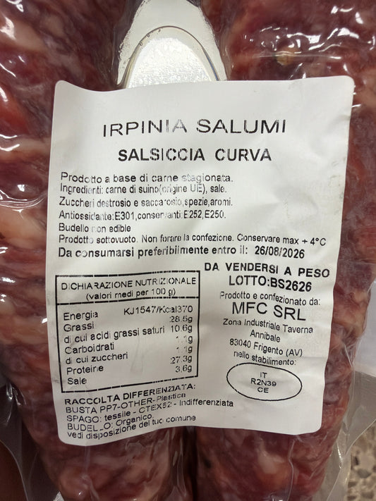 Salsiccia dolce di maiale stagionata trancio da 1kg