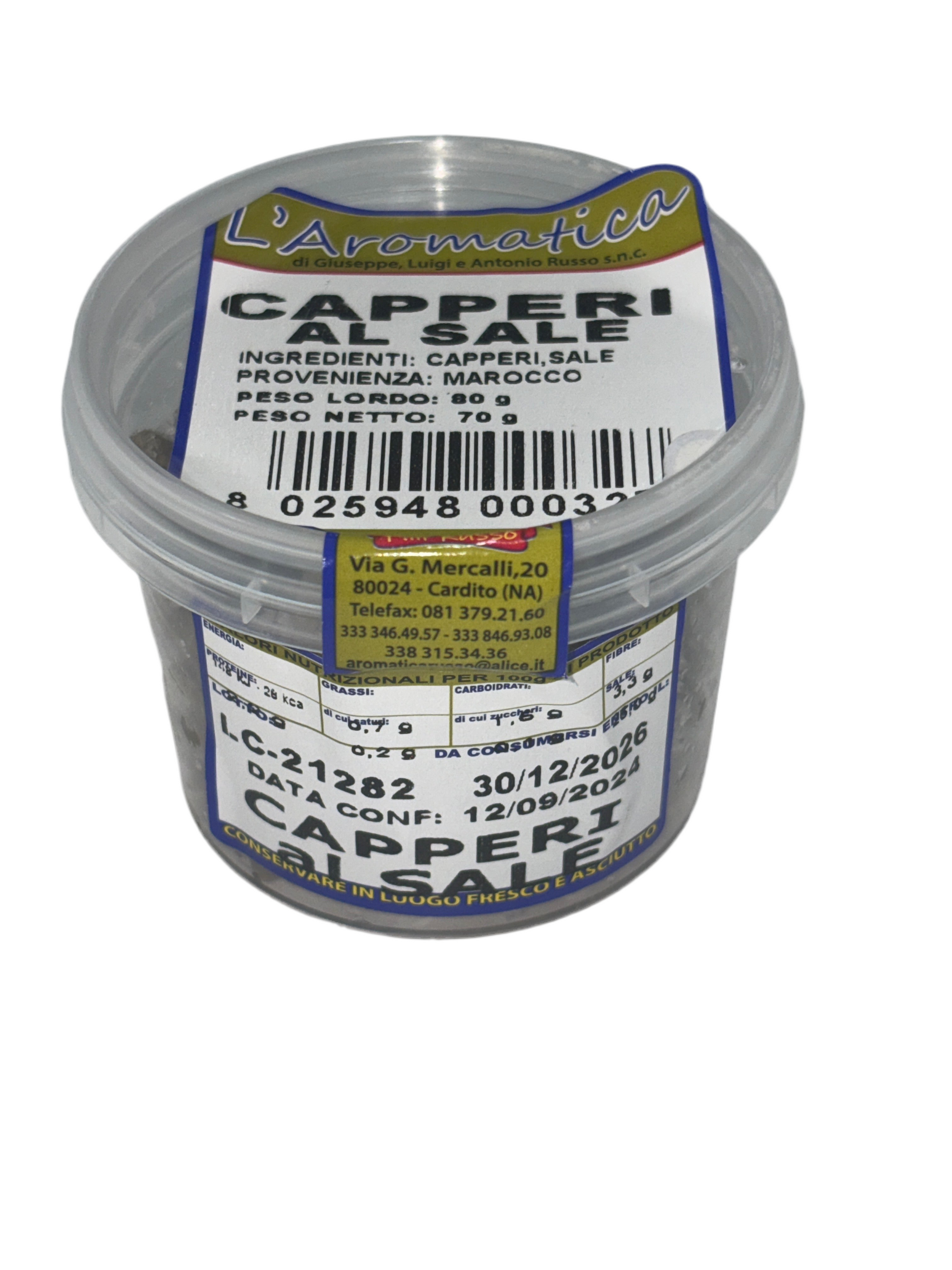 Sciacqua velocemente i capperi sotto sale per eliminare l’eccesso di sale e aggiungili alle tue preparazioni per un tocco di autenticità mediterranea. Ordina ora il tuo vasetto di capperi al sale marino da 80 g e trasforma ogni ricetta in un capolavoro di gusto.